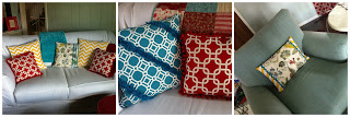 I didn't follow any patterns in sewing up the ottoman cover, window treatments & throw pillows. I used Rowley's Clip & Wave tape on the tops of the window treatments. It worked beautifully! I purchased new feather & down pillow inserts and I am so glad I did--they are much more comfortable than all the different polyester fiberfill forms I had.