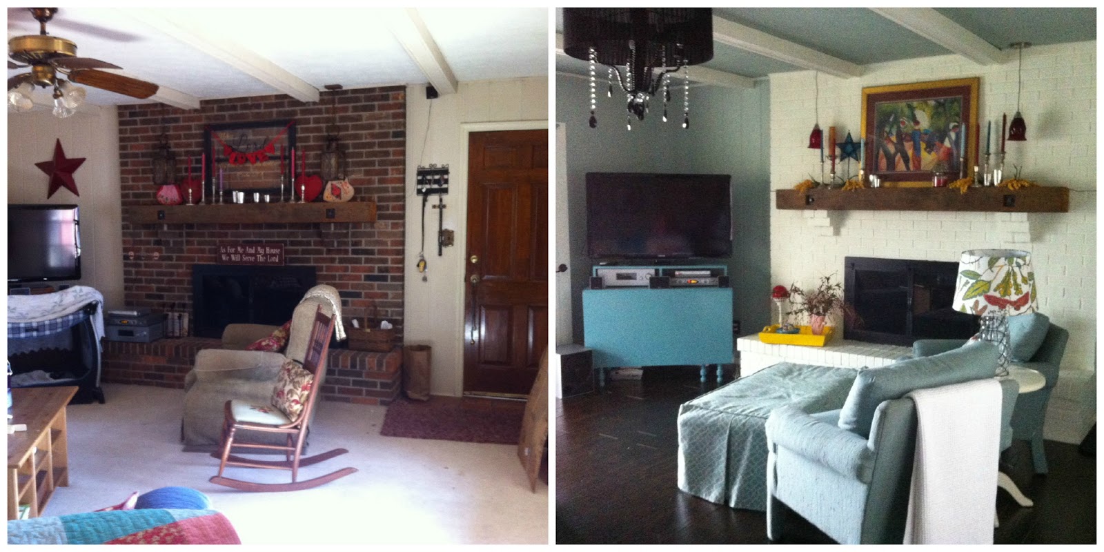Nothing else was purchased new but I did pick up a couple of other things from Goodwill and I moved in things from storage that I was saving or from other rooms. Also, I used paint to change the color of the tv table and the yellow tray on the fireplace. Dr. Love built the tv stand to raise it up and get the cable boxes under it. Those things cost over $50 on Amazon!
